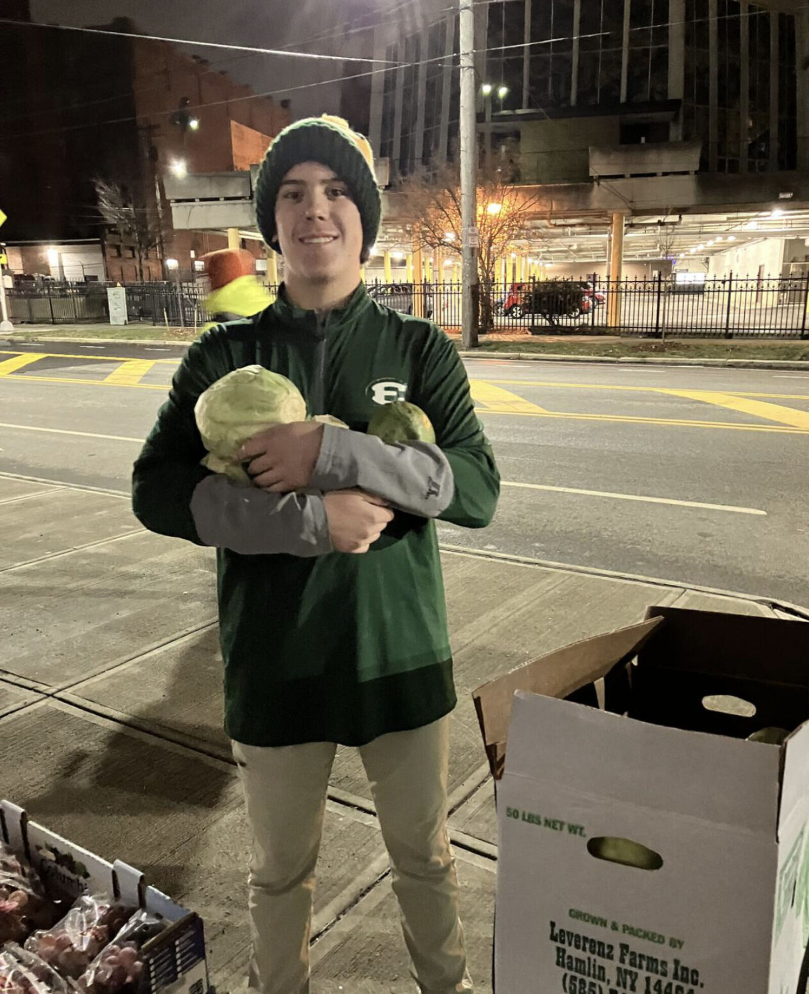 For students like Julian Wolke ’26, that connection is clear. Through Labre Ministry, named for St. Benedict Joseph Labre, patron saint of the homeless, students venture into the city each Thursday night with trained faculty and staff, on a pre-determined route, visiting people where they live: under bridges, in alleys, and on street corners. They bring food, clothing, and conversation to those who are too often unseen.