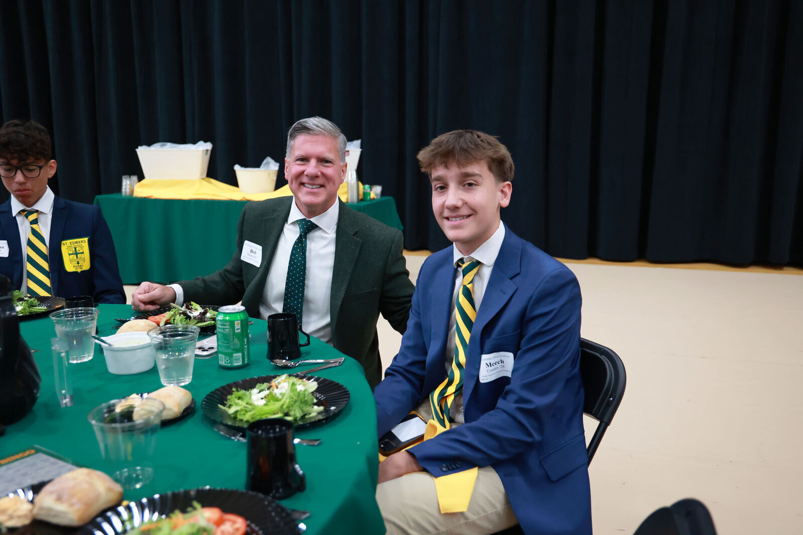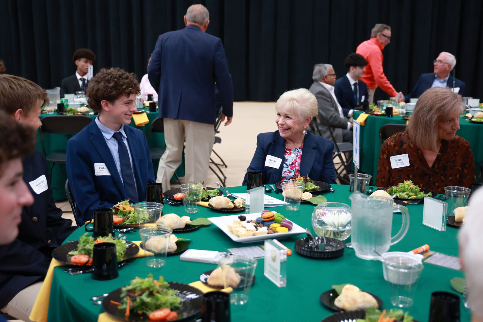 Student speaker Owen Metzger ’26 embodied that mission as he shared his story. A recipient of the Joseph and Mary Holland Endowed Scholarship, established by their sons Dan ’54, Tom ’57, and Mike ’62, Owen thanked Tom and his wife Mary, who were in attendance.
