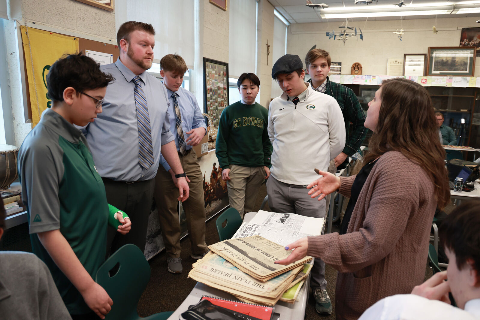 “It’s an incredible honor to teach in this space,” Weidig said. “I remember what it felt like to be a student in here and listen to Mr. Wallenhorst. One of my favorite parts now is knowing that if we’re talking about a moment in history, I can walk a few steps, pick something up, and pass it around to my own students. That connection stays with them.”