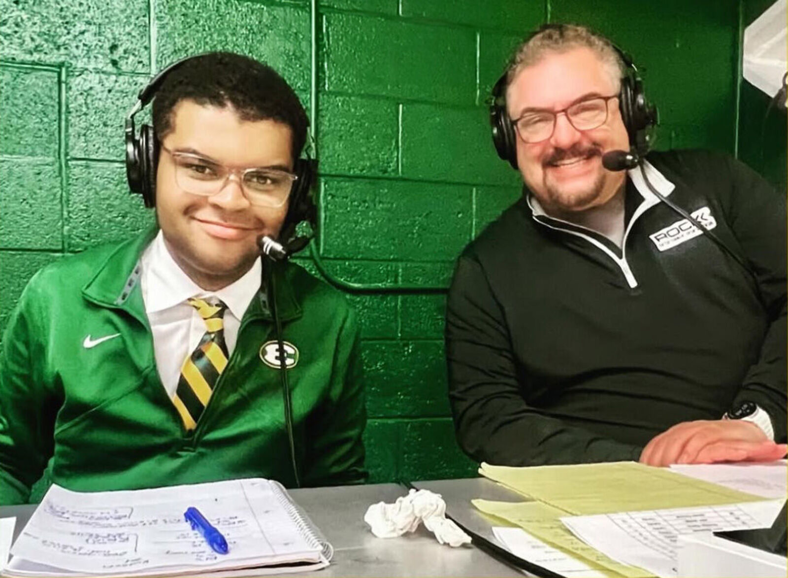 With his academics on track, Lucas turned his attention to the passion that had captured his imagination years earlier. The opportunity arrived unexpectedly during his freshman year when Athletic Director Pete Kahler ’02 asked him to step in as the broadcaster for a volleyball game. “I remember thinking, I don’t know anything about volleyball,” Lucas says with a laugh. "But I also realized it was the opportunity I’d been waiting for, so I just went for it.”